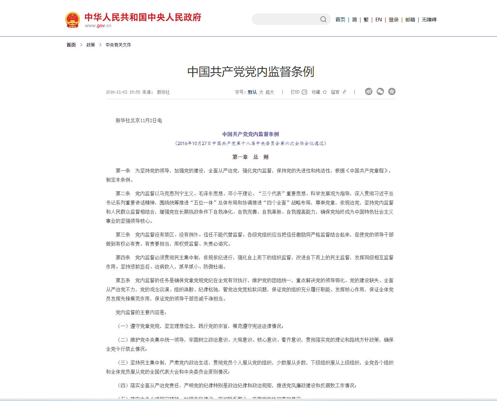 中國共產(chǎn)黨紀(jì)律檢查委員會工作條例(2021年12月6日中共中央政治局會議審議批準(zhǔn)2021年12月24日中共中央發(fā)布) 第一章總則第一條為了加強(qiáng)和規(guī)范新時代黨的紀(jì)律檢查委員會工作,根據(jù)《中國共產(chǎn)黨章程》,制定本條例。第二條黨的各級紀(jì)律檢查委員會高舉中國特色社會主義偉大旗幟,以馬克思列寧主義、毛澤東思想、鄧小平理論、“三個代表”重要思想、科學(xué)發(fā)展觀、習(xí)近平新時代中國特...